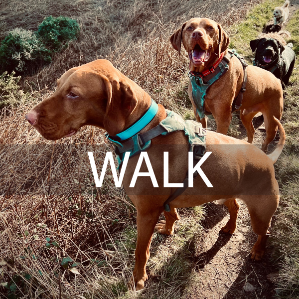 1 hour dog walks on varied and safe routes for a full hour, including off-lead running with owners written permission. (see services+rates)